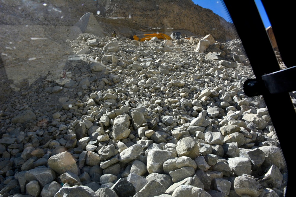 崖崩れが起こった為、今ブルドーザーで岩を崖の下に落としているそうです(涙)